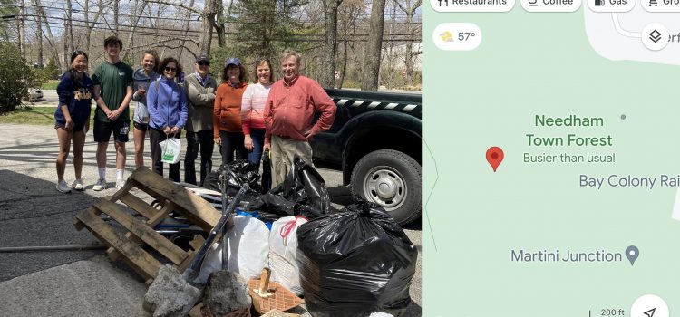 Members of the Needham High School Environmental Club were joined by volunteers from Green Needham and Mothers Out Front along with a few walk-on volunteers to clean up trash in and around the Town Forest this afternoon. Thumbs up and