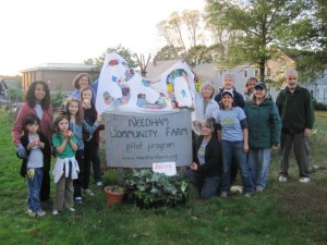 The Needham Community Farm hosted a 350.org “International Work Party” last week which was co-sponsored by the Green Needham Collaborative and First Parish Church. “Work party” volunteers helped winterize the NCF pilot gardens by layering newspapers and hay over the vegetable beds. The group had lots of fun working and enjoyed snacking on apples generously donated by Volante Farms.