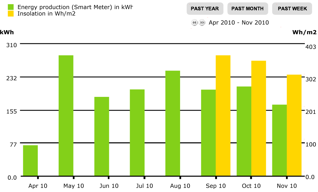 The accompanying chart shows the electricity generated over the first six months the panels have been operating. To be sure, it’s a modest number, but this is only a single 2 kW array.
