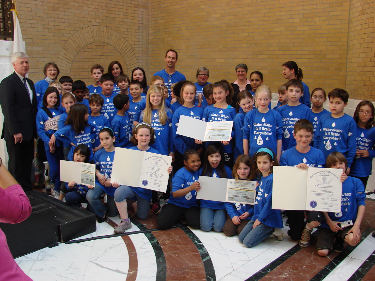Richard K. Sullivan, Secretary, Energy and Environmental Affairs presented the 17th Annual Secretary’s Awards for Excellence in Energy and Environmental Education, at a ceremony at the Great Hall of the Massachusetts State House on Monday, May 2nd. Hillside’s Buddy Water projected was presented a “First Honors for Excellence in Energy and Environmental Education” award.