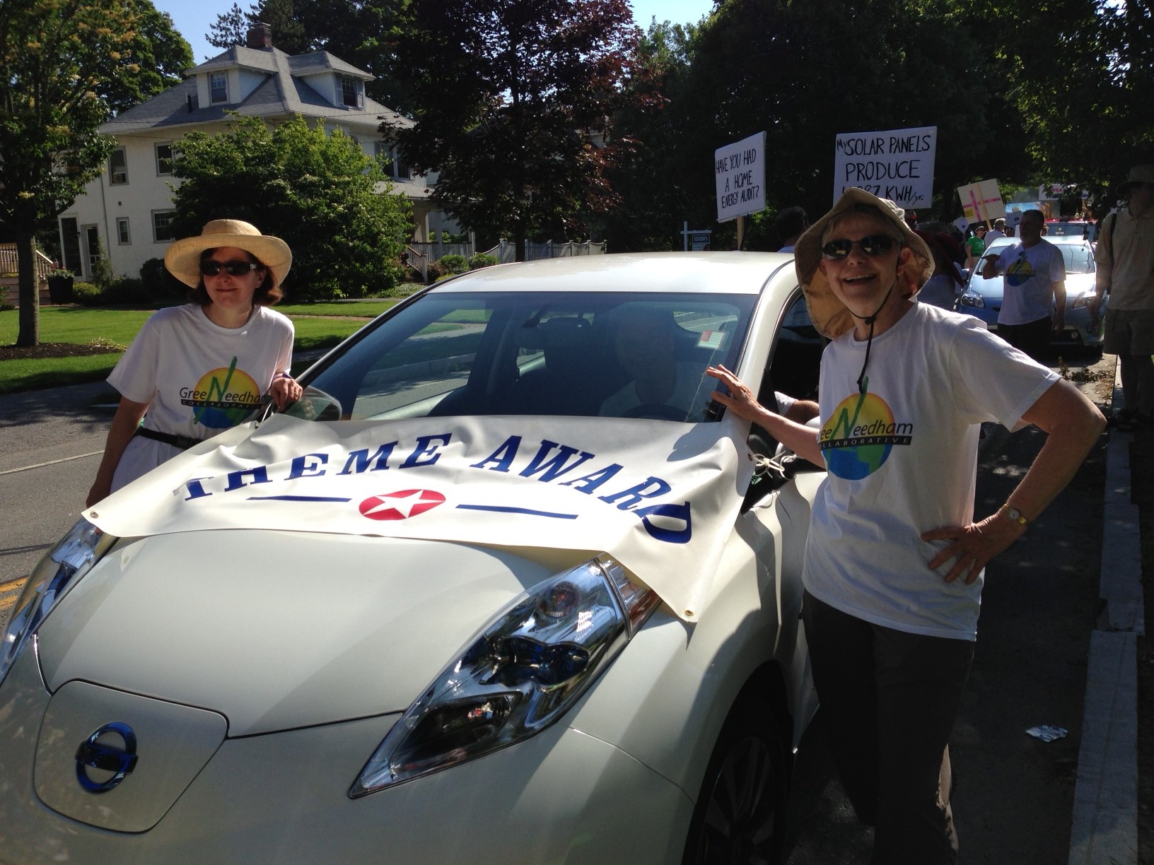 Green Needham celebrated Independence Day at the Needham 4th of July parade this year. Headed by an all-electric Nissan Leaf sedan, Green Needham members were joined by Needham homeowners who have installed solar PV systems on their roofs. We celebrated both freedom from the gas pump and the independence of producing your own electricity.