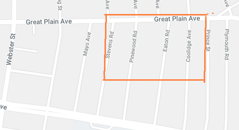 The pilot is underway between May 1st and July 31st 2017. Three streets off Great Plain Avenue have been equipped with different LED streetlights with a fourth having the current High Pressure Sodium lighting (that gives off a yellow glow).