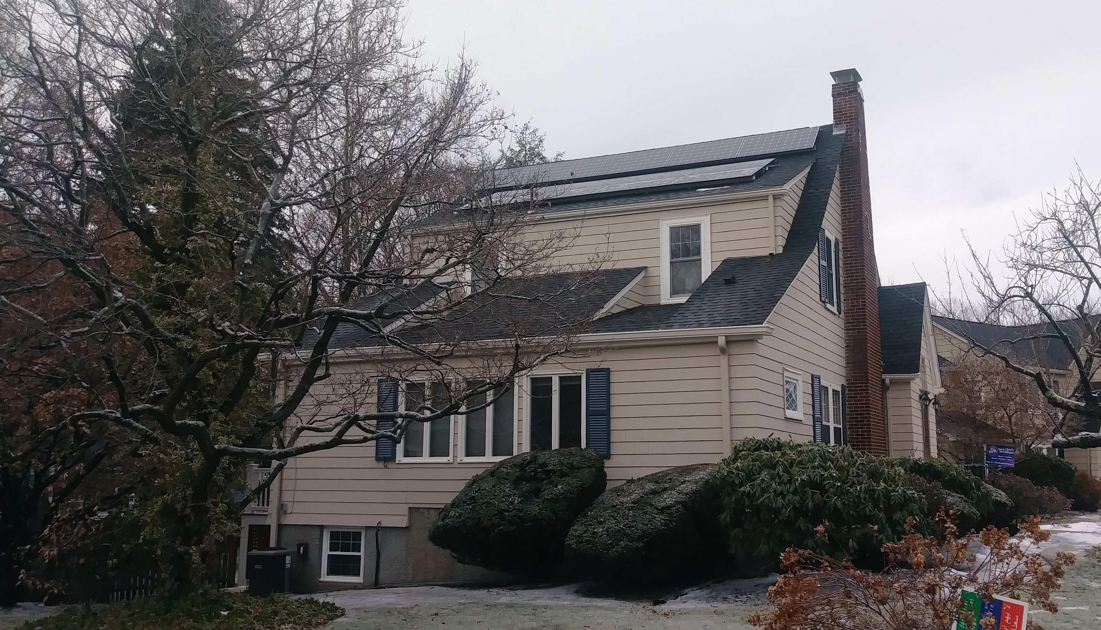 The news they received from the energy assessment was that they could not get the insulation upgrade they had hoped for because the 30-plus year old boiler in the basement had a small carbon monoxide leak. Without the insulation, the carbon monoxide seeped to the outside and did not cause a problem, but with buttoning up their house, it could potentially build up indoors. To upgrade the insulation, they would first need to replace the boiler. At this point, many home-owners might have given up. Instead, Donna & Bill pursued the new boiler and the MassSave incentive to replace it. But the new boiler, it turns out, led to needing to replace the hot water tank. And this led Donna to investigate a solar hot water tank. Now, this cost $9500 up front, but, with the MassCEC rebate, 30% tax credit, and 15% Mass tax credit, her out-of-pocket cost was just over $2000 — same price as a regular hot water tank. So they went with solar hot water.