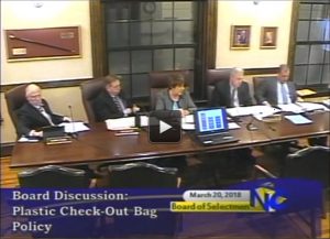 At its March 20th meeting, the Needham Select Board discussed and then unanimously adopted its proposed policy requesting that stores over 3,500 square feet voluntarily discontinue the use of single-use plastic check-out bags on or before June 1st. While this falls short of the simple outright ban supported by Green Needham, and advocated by most of the residents who spoke out at the February 27th public meeting, it is still a significant step forward for our community.