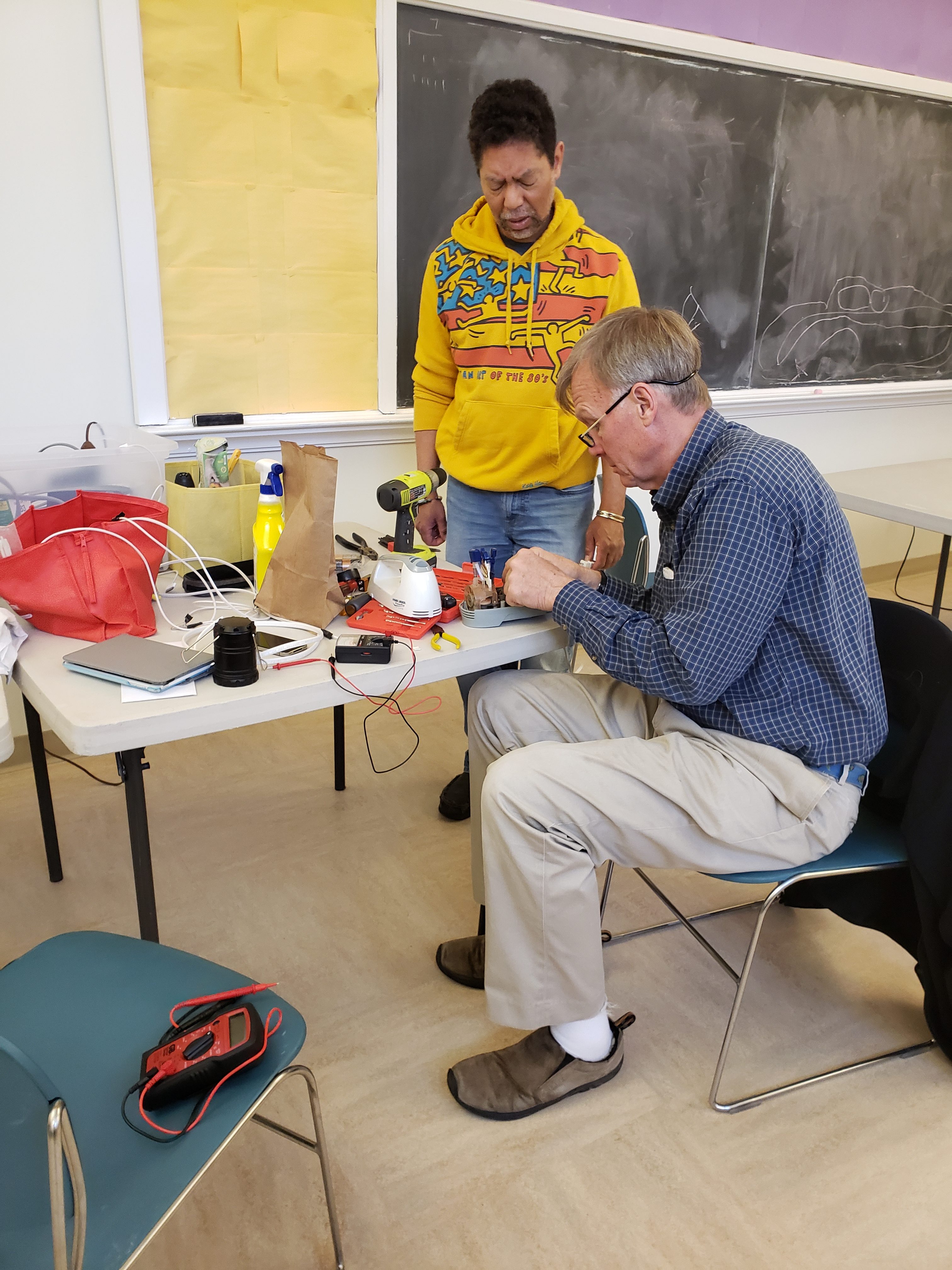 Needham resident Anne Hayek brought two broken fans, both with the same problem – when she turned them on, she could hear the motor running, but the fan shafts did not turn. The repair team found the problem – seized bearings – and fixed both fans, explaining every step of the process to Anne. Not only did she walk away with two working fans, Anne also learned something about how electrical motors worked, and how they can be repaired.