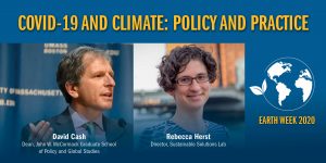 Join David Cash, Dean, John W. McCormack Graduate School of Policy and Global Studies, UMass Boston and Rebecca Herst, Director, Sustainable Solutions Lab, UMass Boston, in a discussion on the emerging lessons learned from responses to the COVID-19 pandemic and how we can leverage those lessons in addressing climate change.