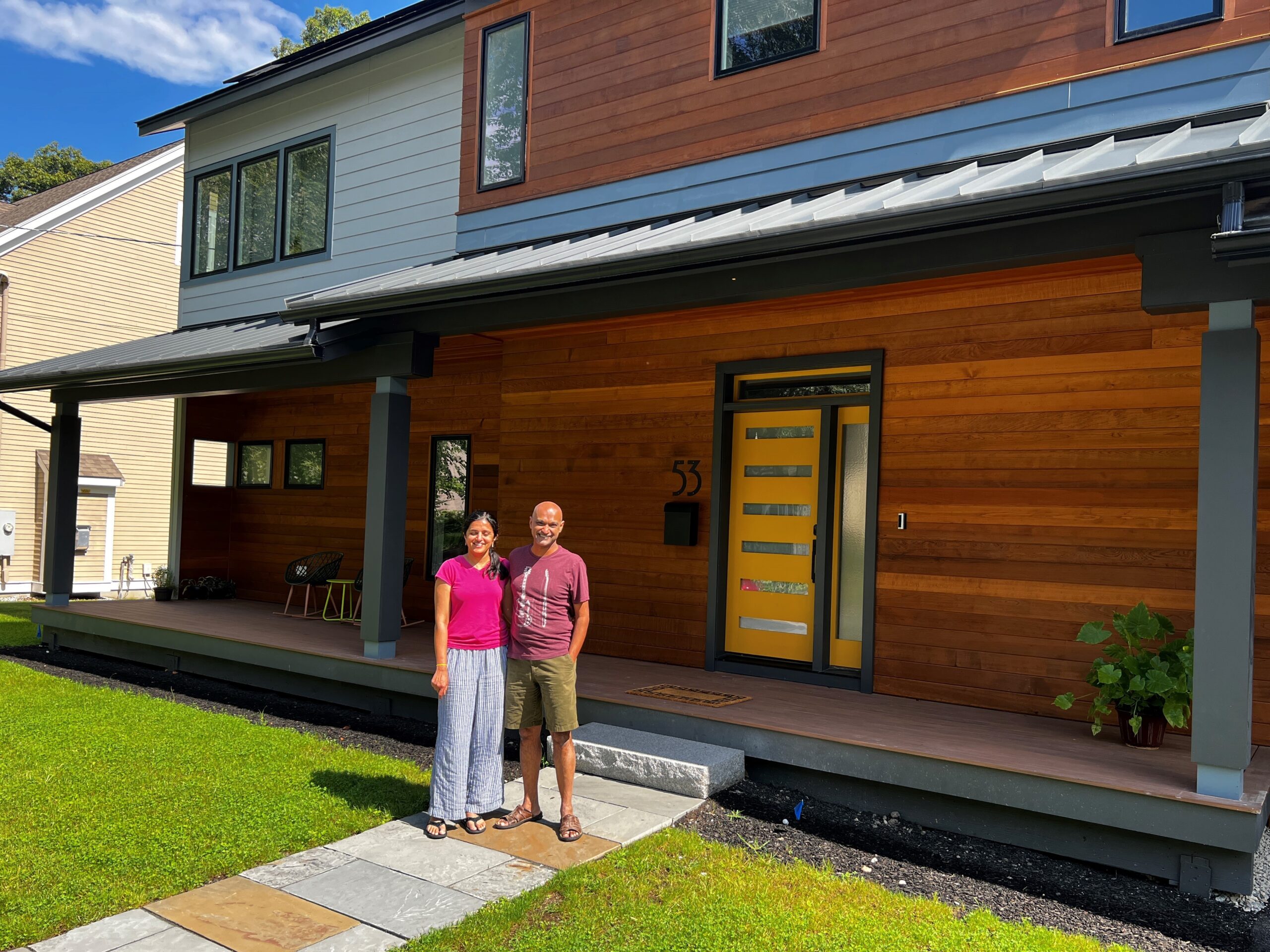 Smriti Rao and her husband Karthik Balasubramaniam were in the process of working with their architect to design a new 5,000-square-foot home in Needham.  When they asked about the HVAC system for the house, they were told that it would be a traditional system with gas heat and AC.  Wanting to explore new technologies to minimize carbon emissions, they turned to Green Needham’s “Ask the Expert” service, which offers free engineering and technical advice to homeowners trying to reduce the environmental impact of their new or existing homes.