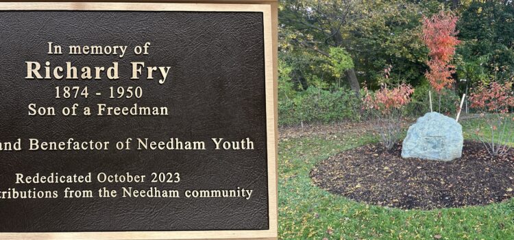 The Richard Fry plaque has been installed at Avery Field, completing the installation of a community project Green Needham began last year. Green Needham had been seeking an installer for the plaque. Wayne Whisler, in Needham’s Facilities Management department, stepped