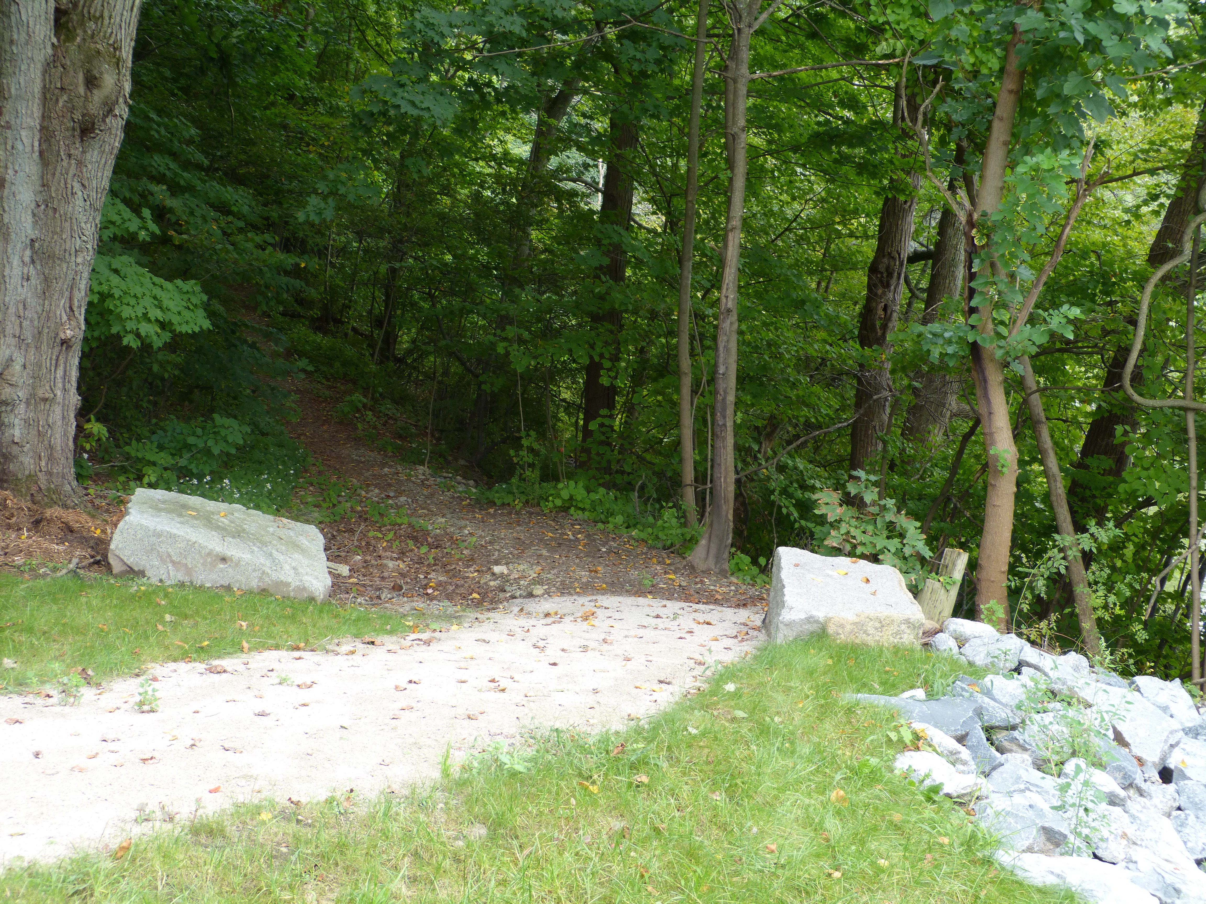 In the heart of Needham, these linear trails are about 1 mile in length and run through the 37 acres of mixed woodlands and forested wetlands that make up the Rosemary Lake area. Trails provide access to varied terrain, with some views of Rosemary Lake and the adjacent wetlands and streams. Difficulty is rated at light/rolling — moderate/steep. An entrance to this trail, marked by large boulders, is part way down the new road off Rosemary Street that leads to the Rosemary Recreation Complex on Rosemary Lake. Pedestrian access is available on May St. and Nehoiden St. Trail map.